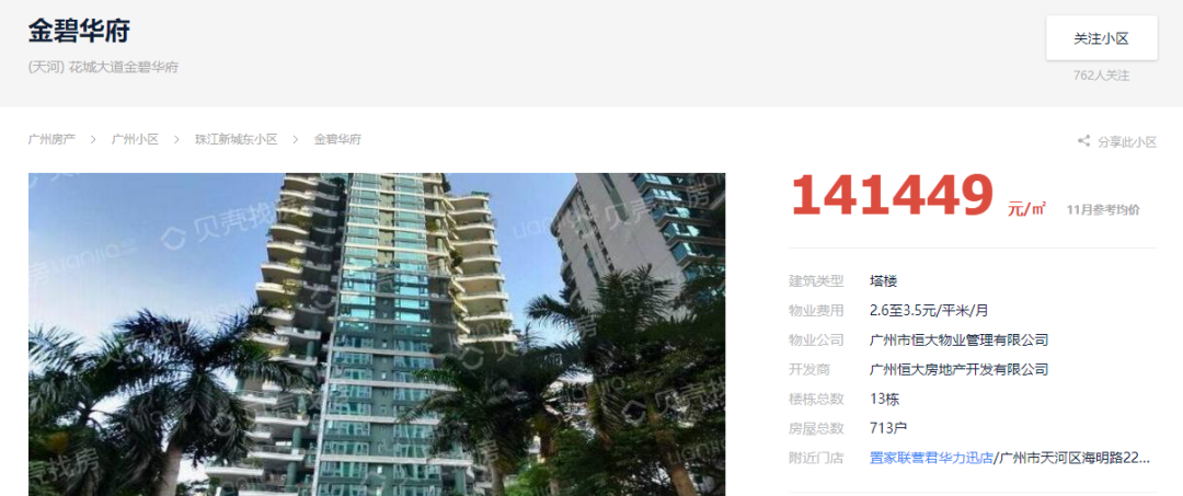 基金君上贝壳找房查了一下,金碧华府的均价在14万左右,开发商跟物业均是恒大。