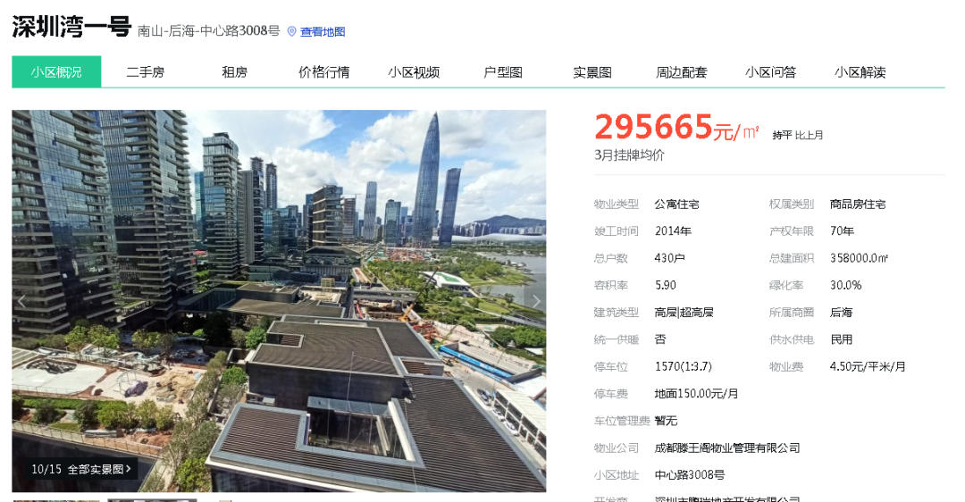 基金君上安居客查了一下,深圳湾一号最新的均价在29.5万左右。