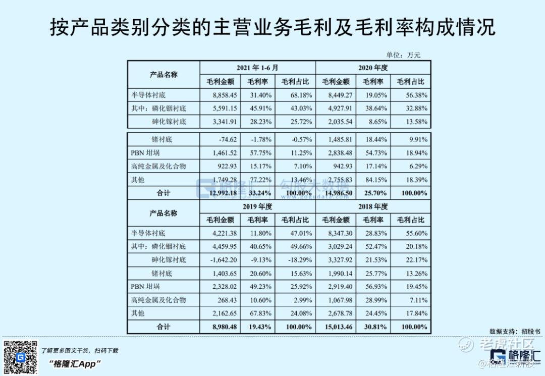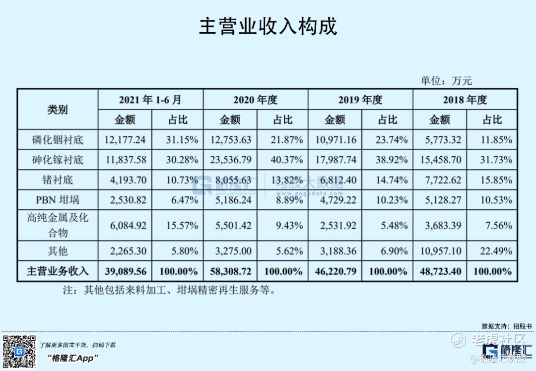 公司的主营业务中,磷化铟衬底和砷化镓衬底业务收入占比较高,尤其是磷化铟衬底业务收入逐年攀升,占主营业务的比重从2018年的11.85%增至2021年上半年的31.15%。