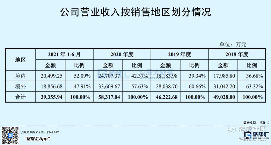 按地区分类来看,报告期各期,通美晶体的境外营业收入占比分别为63.32%、60.66%、57.63%及47.91%,比例较高。在公司境外收入持续增长的情况下,随着境内半导体产业链的逐步成熟,内销占比也呈现逐年上升态势,2021年1-6月,境内成为公司收入来源的主要区域。