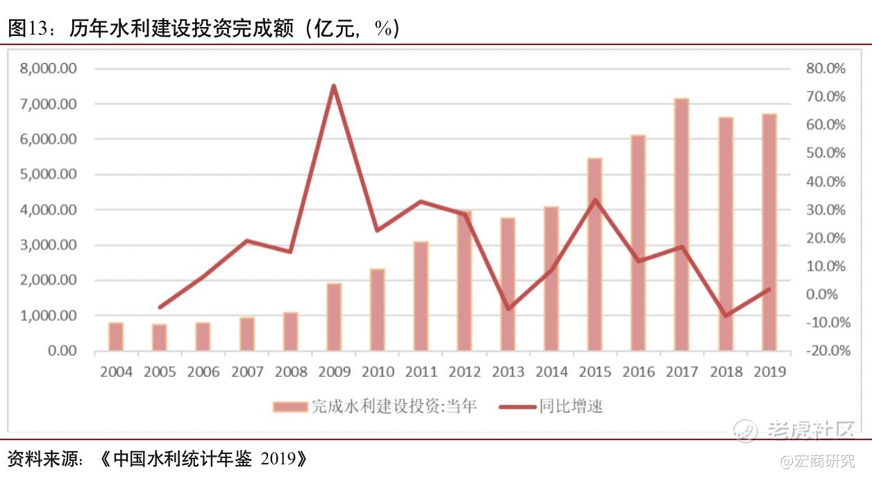 我国水利建设投资具有显著的逆周期特点,2022 年水利投资增速预计和 2020 年接近。根据《中国水利统计年鉴 2019》,在 2009、2015 等经济下行年份, 水利投资建设完成额均出现了大幅反弹,2009 年为 74.1%、2015 年为 33.5%。根据水利部全国水利工作会议,2019-2021 年水利建设投资(与水利统计年鉴口径不同)分别为 7260、7695、7576 亿元,对应 2020、2021 年增速分别为 5.9%、-1.5%,2020 年逆周期增长明显,远远快于当年固定资产投资完成额 2.9%的增速。3 月 9 日国常会指出全年水利投资可完成约 8000 亿元,对应增速5.6%,与 2020 年投资力度接近。