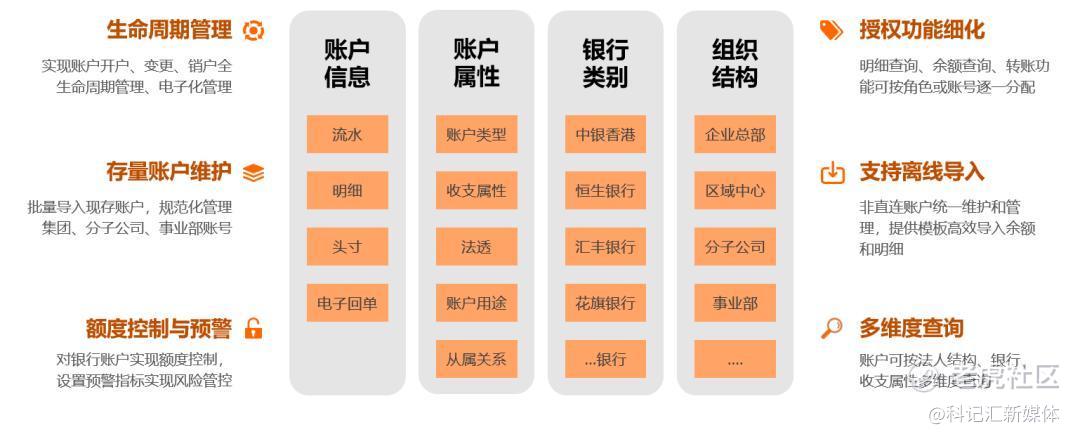 境外账户管理、境外跨境付款及合规管理、境外付款安全机制管理、境外收款清分、境外银企直联。