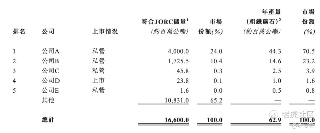 倘公司于Kokbulak铁矿石项目中心区经营的合共约337公吨可开采资源可转换为符合JORC标准的储量,则公司于符合JORC储量方面将排名第三。公司的估计年产能约为24.0百万公吨,倘已投产,将位居第二位。