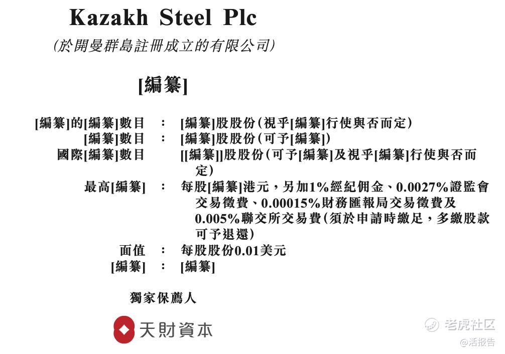 S&TLiveReport获悉,成立源于2012年Kazakh Steel Plc(以下简称“Kazakh”)于2022年4月14日在港交所递交上市申请,拟香港主板上市。这是该公司第1次递交上市申请,独家保荐人为天财资本。