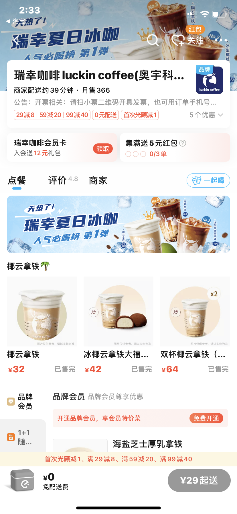 1分钱买两杯咖啡?“椰云”套餐价格出错,瑞幸咖啡紧急叫停并致歉