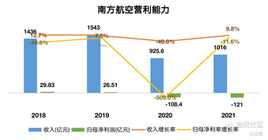 航空机场板块中,以南方航空为例。其2020年南方航空营收下降40%,并且由盈转亏,归母净利润大幅下降。2021年虽然营收有一定回升,但是亏损却进一步扩大。