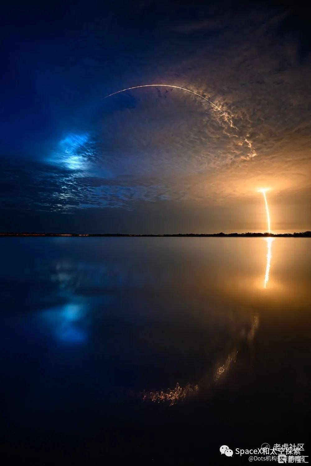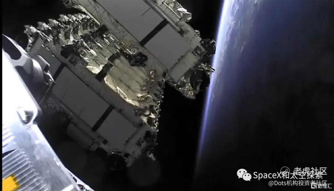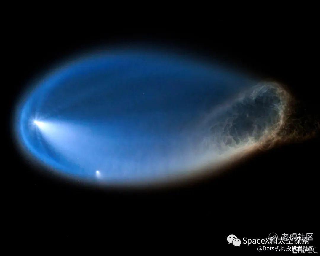 由于本次发射时间是清晨,猎鹰9火箭一级在返回地球的过程中,在太空适逢日出,在经过刹那间的日出光芒之后,重新进入太阳光还没照到的黑暗之中,极其精彩。