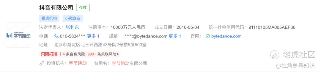 而据资料显示,字节跳动有限公司已于5月7日更名为抖音有限公司。抖音有限公司成立于2016年,法定代表人为张利东,大股东为张一鸣,持股比例98.814%。