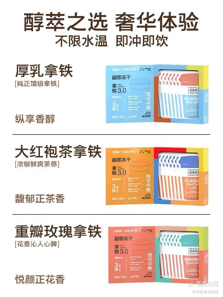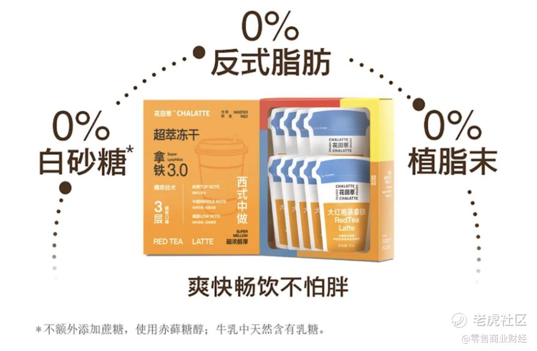 “不同于传统速溶三合一,我们主打0糖、0植脂末、0反式脂肪酸,给消费者以好喝、好看、健康、低热量的咖啡新体验。”花田萃 / Cha Latte创始人郭磊向「零售商业财经」表示。