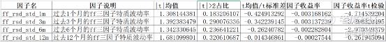 结果表明随着波动率计算周期的增加,因子收益率依次减少,但t值都不显著,ff_rsd_std_1m表现最佳。