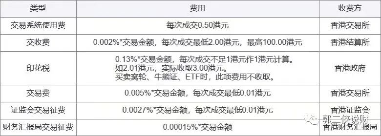 我们先看看港股的交易收费情况。