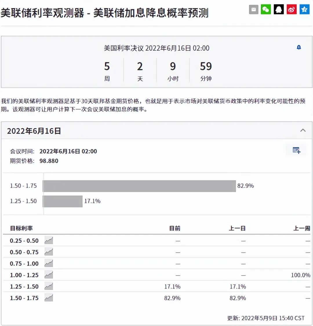 从美股暴涨暴跌的走势来看,市场对于美联储激进加息的恐慌犹存。根据Investing.com的利率观测器,美联储在6月加息75基点的概率达到82.9%。