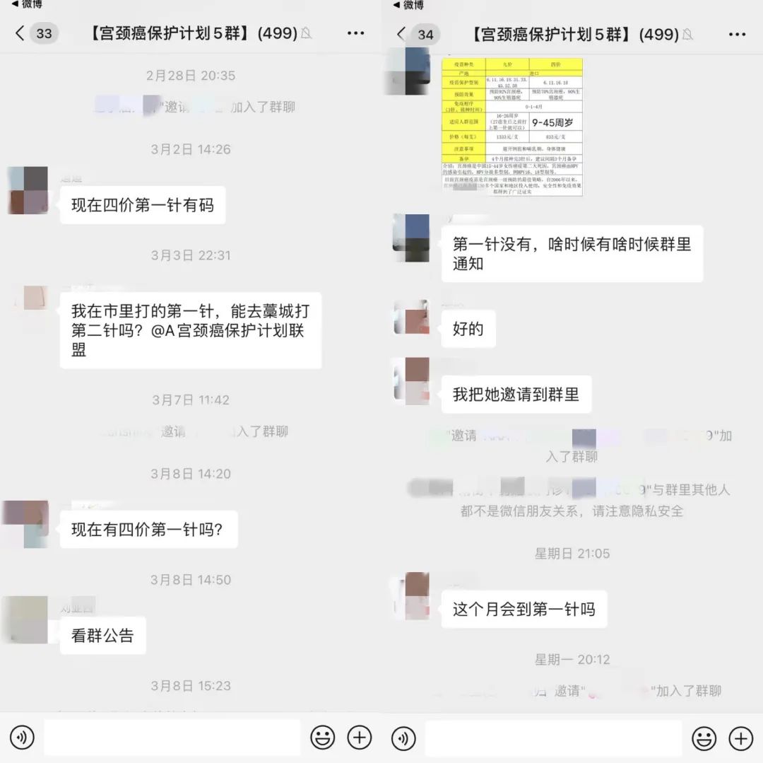 打完第一针后,吴三金加入了一个由防疫站人员组建的“宫颈癌保护计划”微信群,她所在的是第五个微信群了,但群里的500人上限很快就满员。群里的工作人员会定时通知疫苗放号的时间,直到现在,每天还都会有人在群里询问情况。