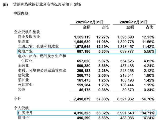 此外,中国银行2021年的个人住房抵押贷款从34.71%下降至33.32%。