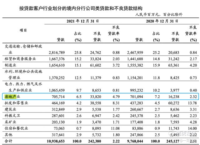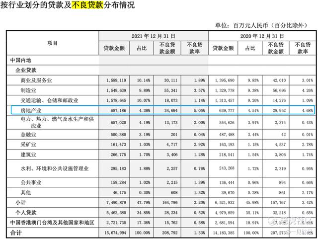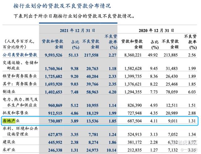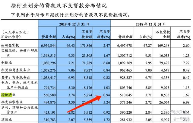 再来看看建行2019年的房地产业不良贷款情况,不良贷款率是有0.94%,大约只有2021年的一半。
