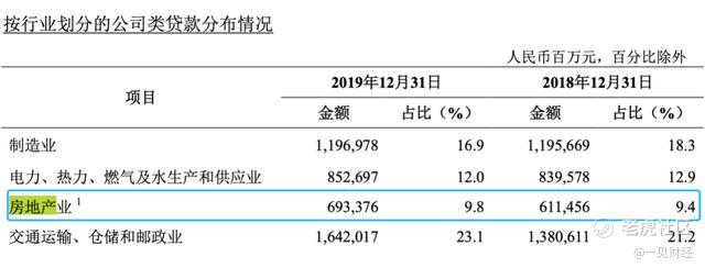 以农业银行为例,2019年房地产业贷款为6933.76亿元,比2018年增长了819.2亿元,贷款比例也从2018年的9.4%增长到2019年的9.8%。