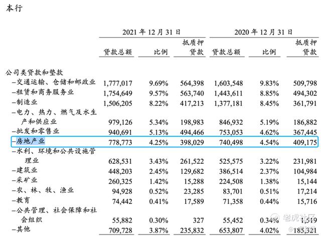 对比发现,2021年房地产业贷款余额最大的银行不是建设银行,而是农业银行。