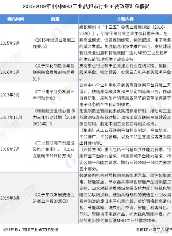2015年以来国家颁布了一系列政策,引导国内制造业向数字化、智能化、绿色化方向发展,同时引导个人消费品、生产设备等领域产品以旧换新,加速产品更新换代,推动工业互联网发展,这一系列的政策举措将有利于国内工业企业生产加速向数字化、智能化转型,进而推动MRO工业产品需求增长,加速销售渠道整合,为行业发展提供契机。