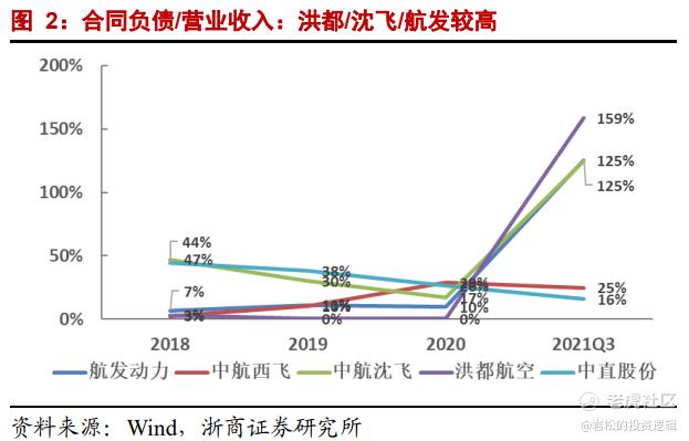 从企业合同负债来看,中航沈飞、航发动力、洪都航空等航空终端产品主机厂2021年前三季度的合同负债都出现大幅增长,合同负债与当期营业收入的比值均超100%。可见这些公司在手订单充足。
