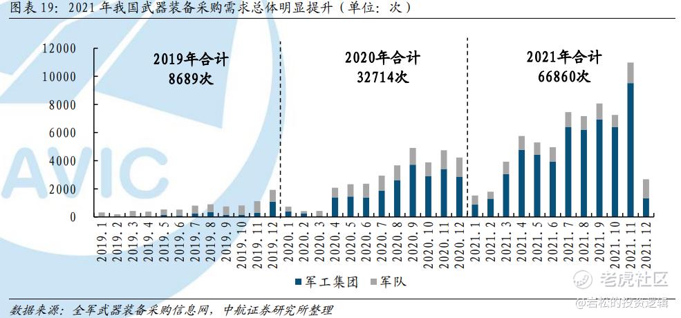 2020年,我国武器装备采购公告数量同比增长2倍多,2021年同比实现翻倍,采购力度明显增大。