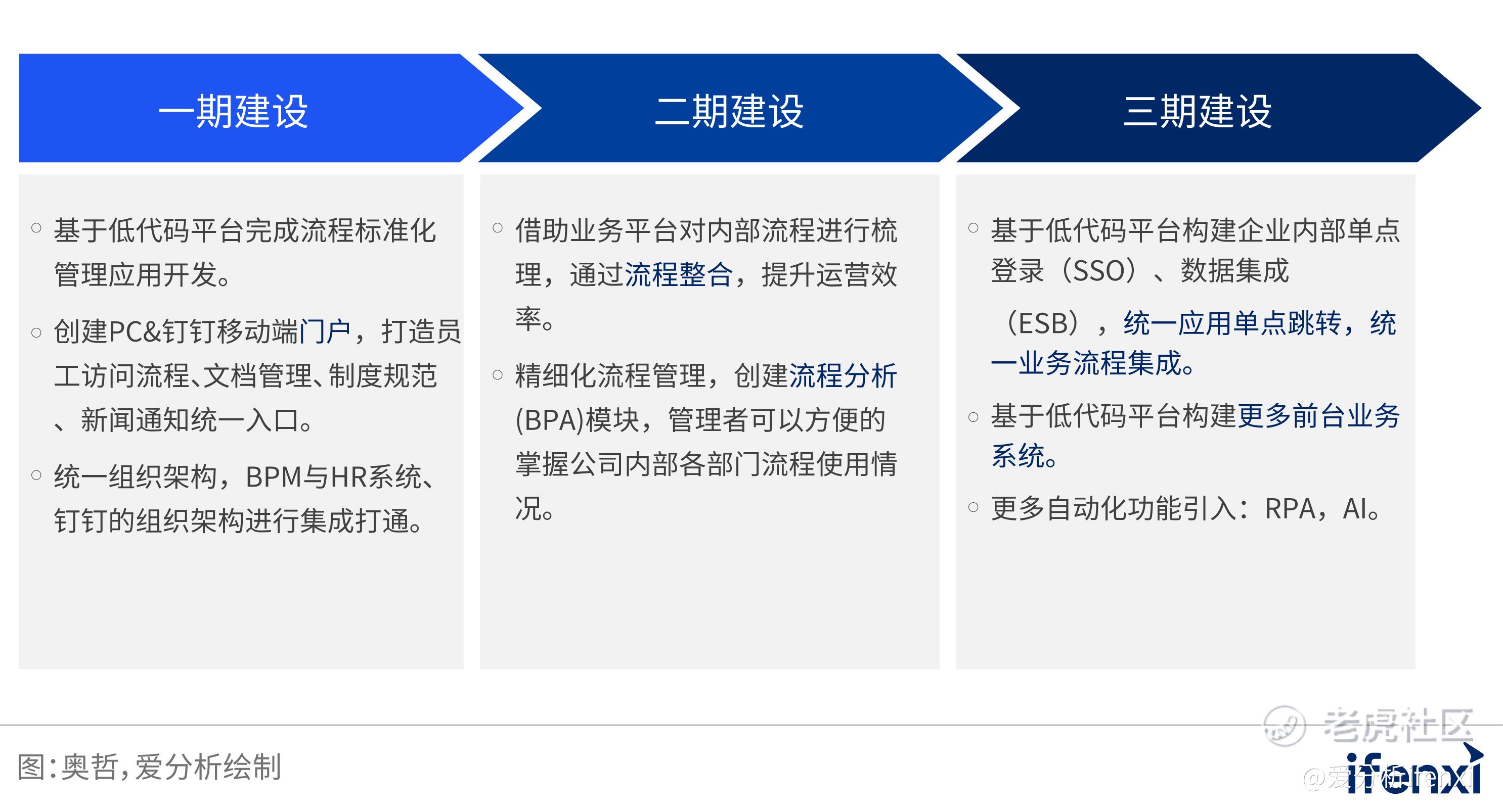 第二,在完成需求拆分后,企业需要根据需求的难度和紧急程度分步进行实施,在使用过程中不断迭代更新。该项目中,夕尔控股集团整体规划,分步实施,逐步实现基础流程审批管理、业务贯通和精细化管理,三大目标的难度依次增加,这样既能够让一部分需求现落地,又能让企业在使用与尝试中进行平台功能的丰富与优化。