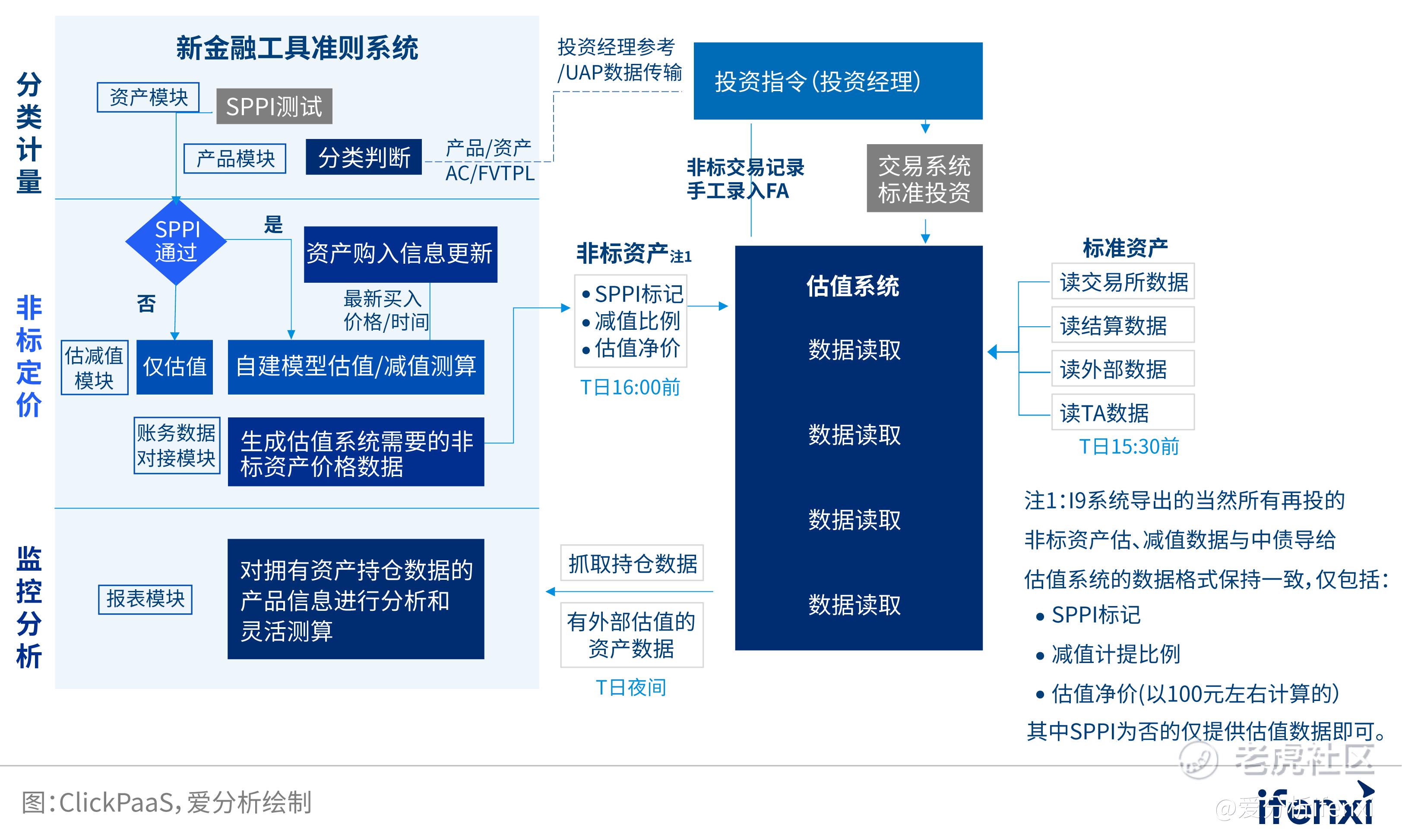 非标定价。非标资产的定价需要通过估值模型与减值模型来测算,对未通过SPPI测试的非标资产,系统只需进行估值并将数据导入外部估值系统;而对于通过测试的资产,不仅需自建估值模型,根据行业与业务类型计算净价,还需要通过ELC减值模型对违约概率、LGD违约损失率、预计信用损失等进行测算,确定减值比例,并将其SPPI标记、减值比例与估值净价输入估值系统。同时,当购入新的同类非标资产时,信息需能自动将相关信息输入系统,进行估值减值测算。