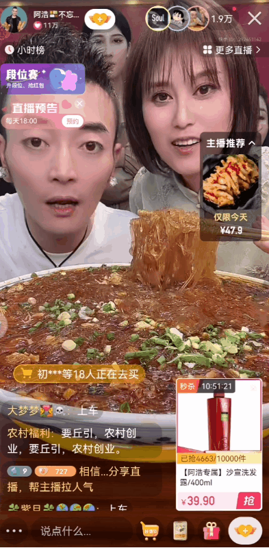与此同时,有些主播之间,还会在直播带货的过程中,进行美食PK赛。有的主播互相比赛谁吃东西吃得快,有的主播比拼谁吃东西吃得多,直播间里,眼花缭乱的食物,令人目不暇接。