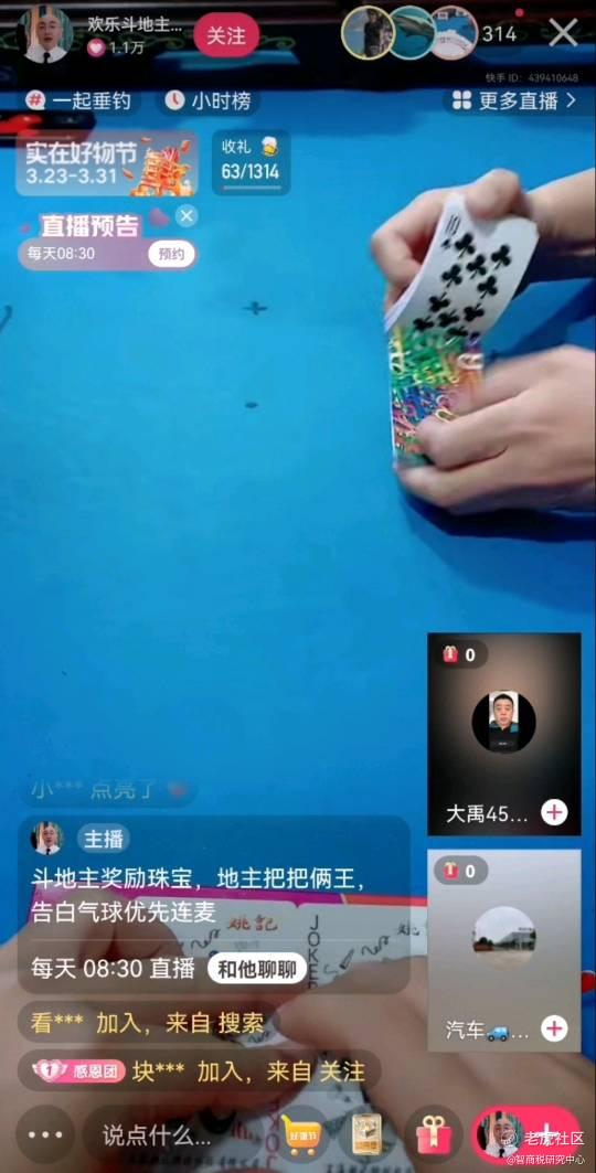 在快手的另一场带货直播中,斗地主这门游戏就成了直播间的主角。