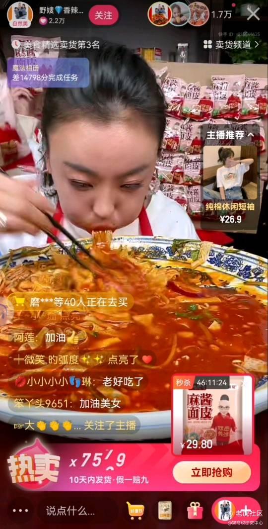 有的主播仅仅是自己吃,有的主播还会招上别人一起吃。