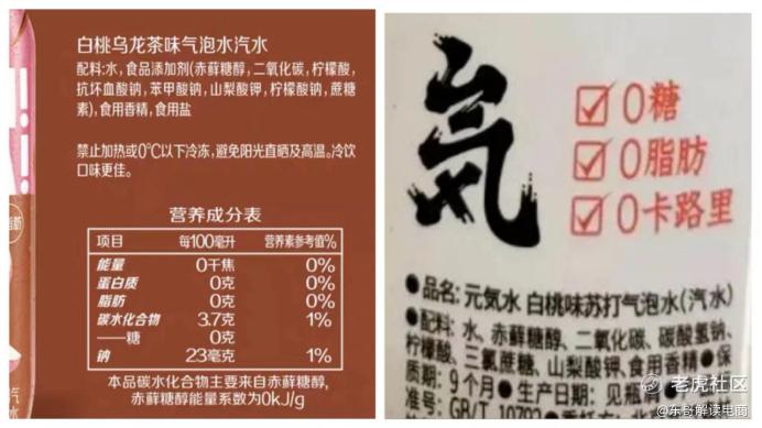 小宇宙白桃乌龙茶气泡水配料VS元气森林白桃气泡水配料