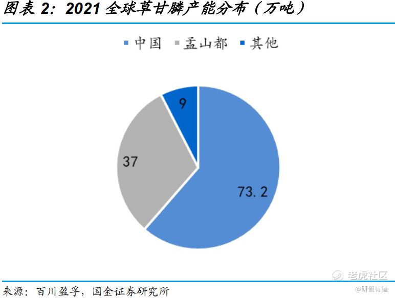 中国草甘膦2021年产量62.05万吨,其中90%以上用于出口,主要出口到巴西、美国、阿根廷等转基因农作物生产大国,贡献全球70%左右的供应量。