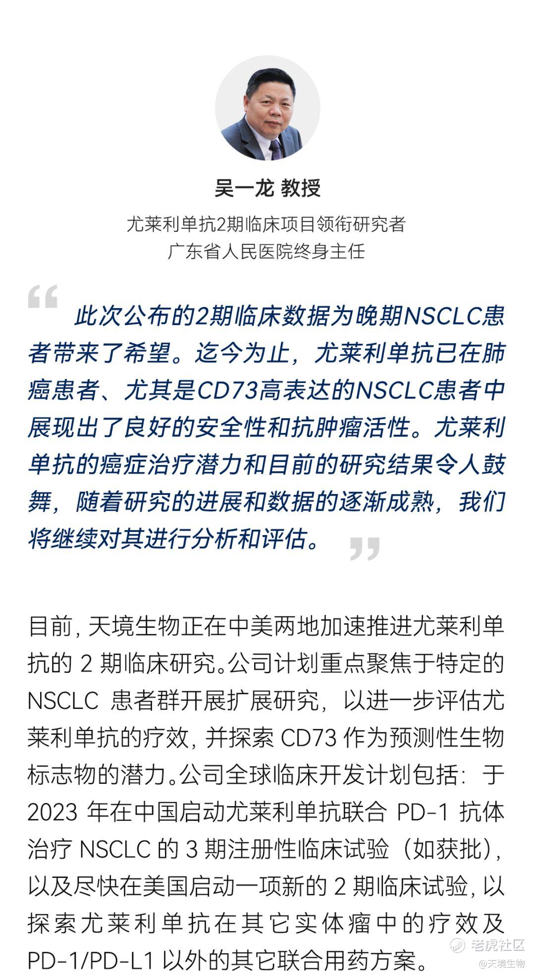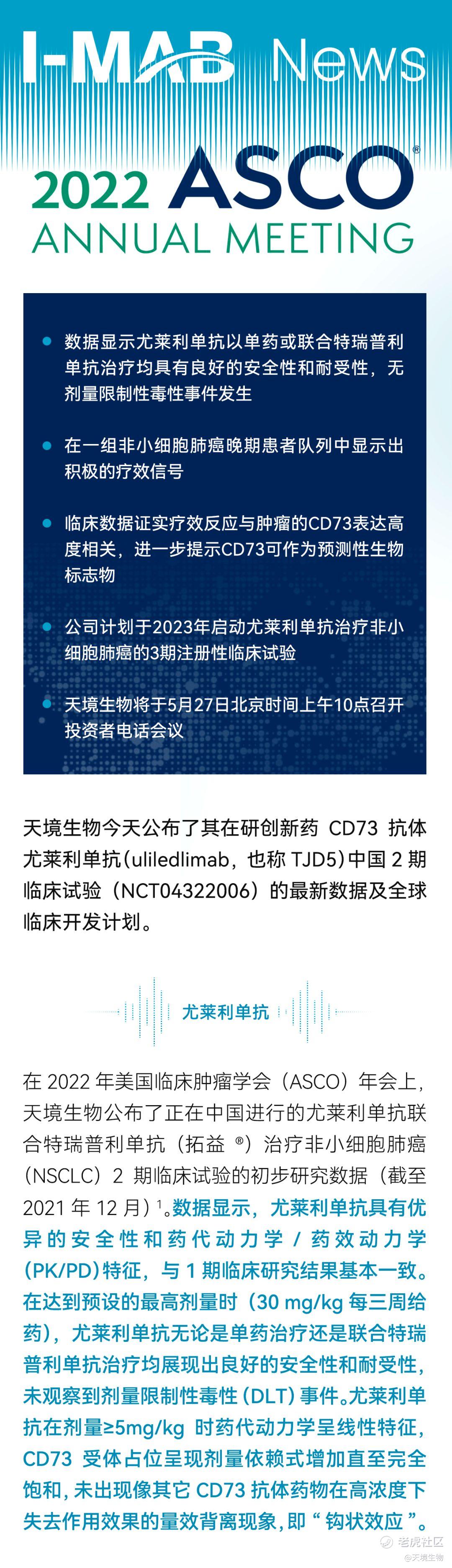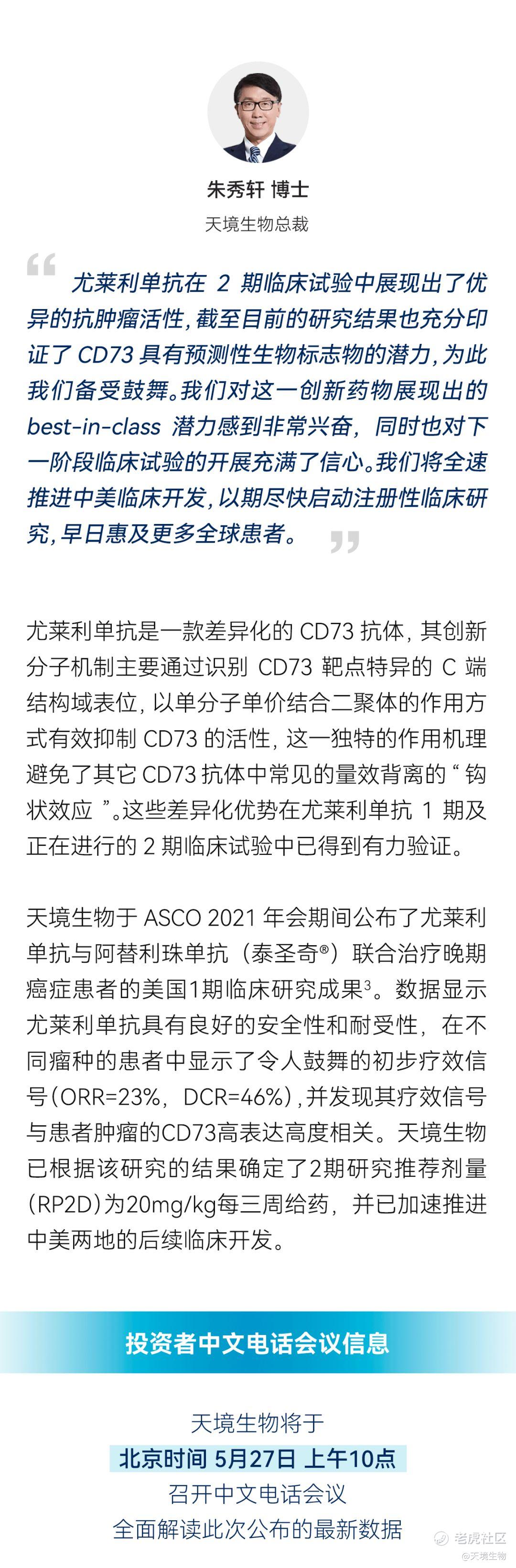 天境生物公布差异化CD73抗体尤莱利单抗2期临床研究最新数据