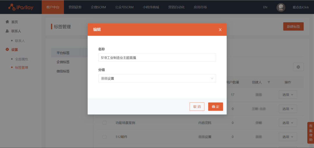 爱信来-客户中台标签编辑