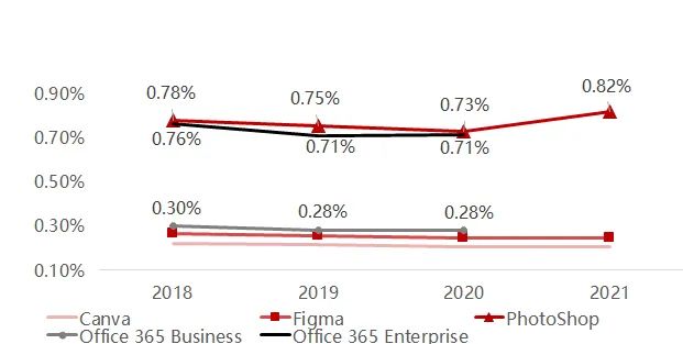 整个价格调整的范围应在人员工资的0.2~0.8%,复杂工具的定价一般不会超过服务群体员工的年工资0.8%,简单的工具是0.3%左右,我们认为这也是未来一些PLG产品定价的一个区间,并且在未来将呈现上升的趋势。