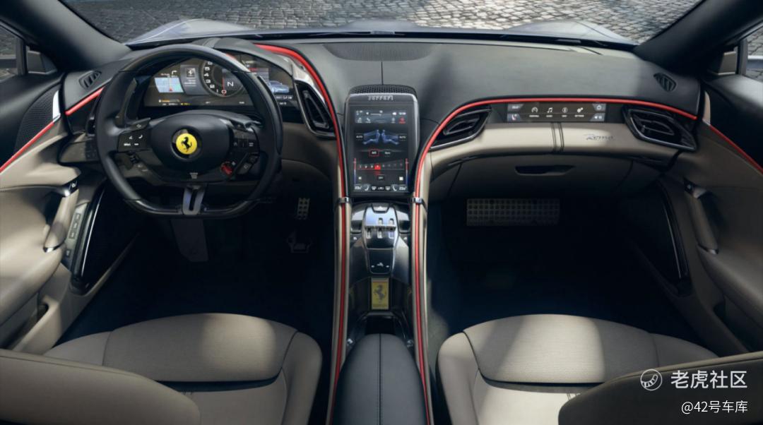 为了实现这样的效果,设计师特地将仪表台的线条增加了一个柔和的凸出,这样使得不管是以横向 1/2 处,还是横向 1/4 处为中轴,都得到了一个左右对称式的视觉效果,也让两个位置的乘客都能有被拥抱其中的温暖感受。类似的设计还曾经出现在法拉利 Roma 上。