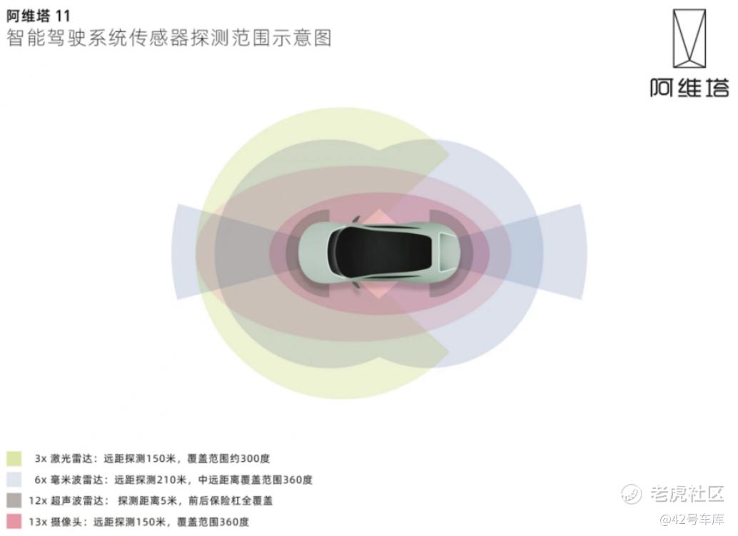 而在辅助驾驶的配置上,3 颗激光雷达、6 颗毫米波雷达、12 颗超声波雷达、13 颗摄像头再加 MDC 810 平台,足以做到傲视群雄。阿维塔 11 在一辆智能电车的传统项目上,实力可以说是非常强劲了。