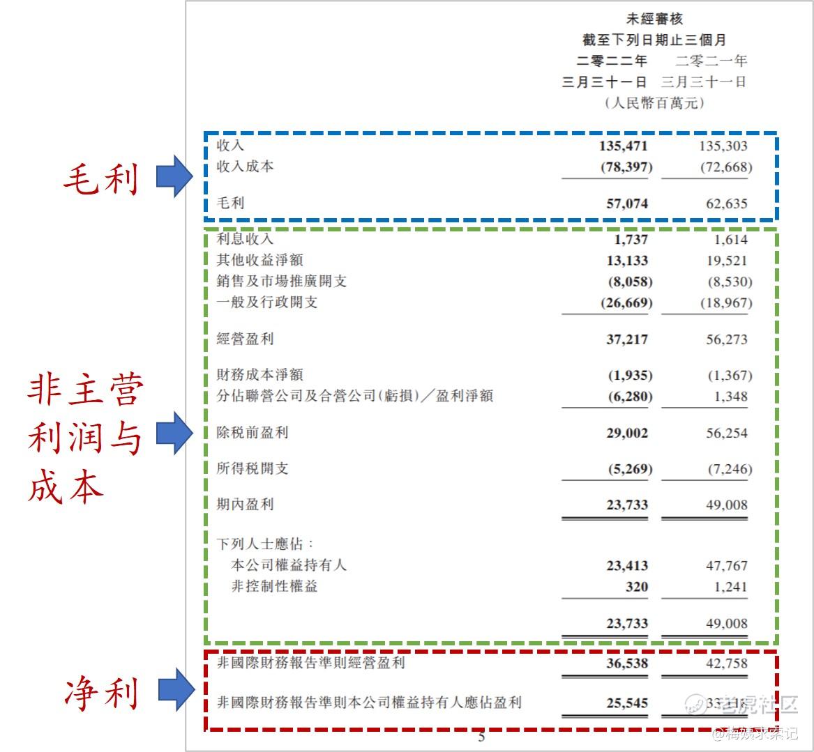 你看,绿色框中包括了代表投资收益的“其他收益净额”、“联营及合营公司的盈利净额”,这两项梅姨在《平均月薪8万的腾讯,还值得持有吗?》中也有详细讲过。