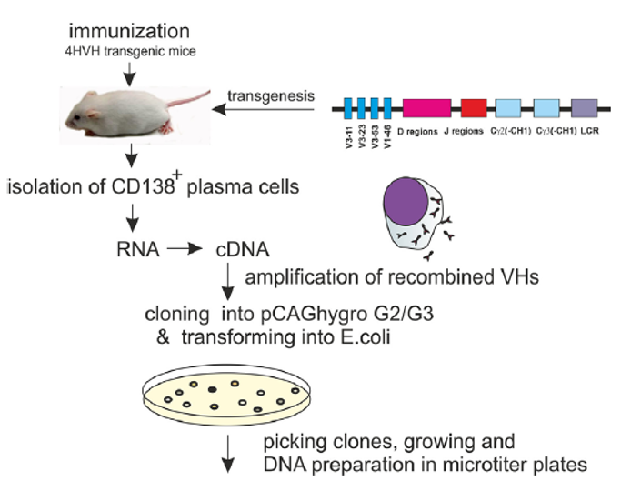 4、Drabek D, Janssens R, et al. Expression Cloning and Production of Human Heavy-Chain-Only Antibodies from Murine Transgenic Plasma Cells. Front Immunol. 2016