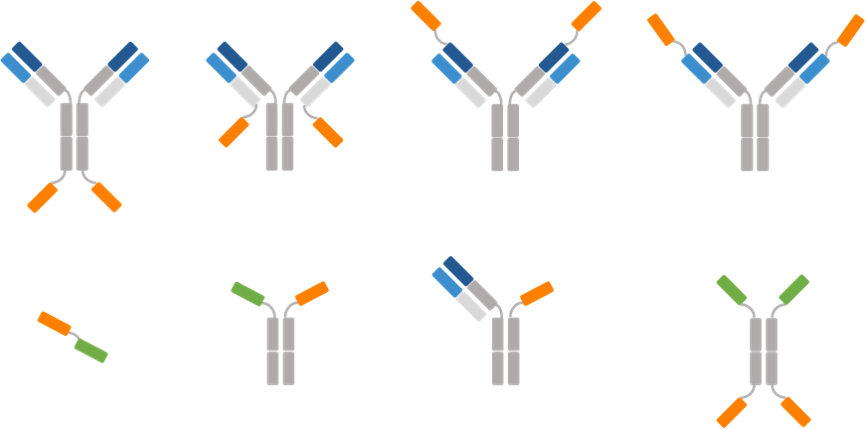 由于人VH抗体分子量较小,因此其很容易通过基因工程手段将多个纳米抗体单体串联表达,实现抗体的多聚化,或者生产多价抗体。而且其可以和常规抗体进行组合,进行双特异抗体构建,除此之外,其也可以通过化学手段和一些载体类药物偶联,实现药物的定向递送。