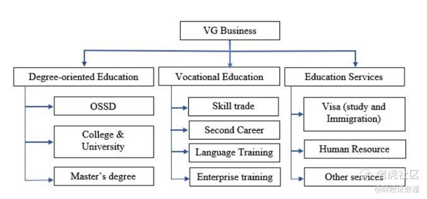 远见控股坐拥加拿大丰富的教育资源,在加拿大顶级动画学校Max the Mutt 动画、艺术与设计学院、康布里奇学院、多伦多多塞特学院、萨斯喀彻温大学等均有教学项目,他们的野心是巨大的。目标是一个人一生的学习旅程,从幼儿园到毕业,从职业发展到退休,远见控股正在慢慢地把市场业务蔓延向教育的各个领域。目前,远见控股拥有三个业务集群:以证书为导向的教育、职业教育和教育服务,这三个集群是互惠互利的,他们一起推动着远见控股向前发展。
