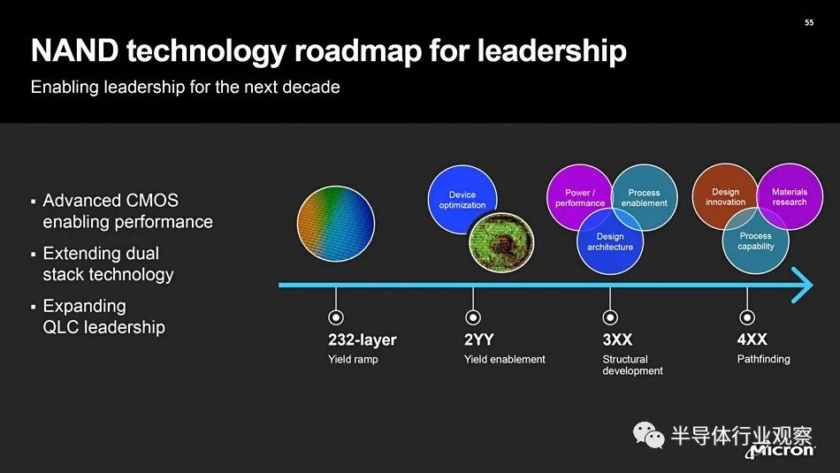 美光近日表示,公司正在开发 232 层 3D NAND,并制定了 500 多层的路线图。
