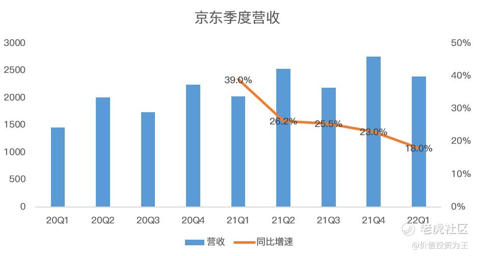 一季度,京东实现2397亿收入,同比增长18%,高于市场预期16.5%的增速。