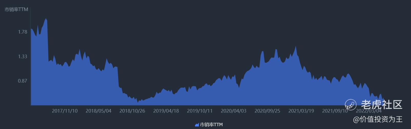 截止目前,京东动态市销率只有0.55倍,处于近5年来的低位,仅略高于2018年底部时的0.47倍: