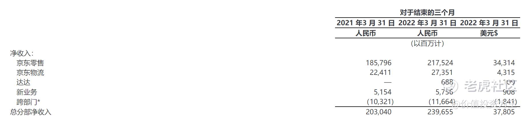 一季度新合并达达收入,为6.88亿。