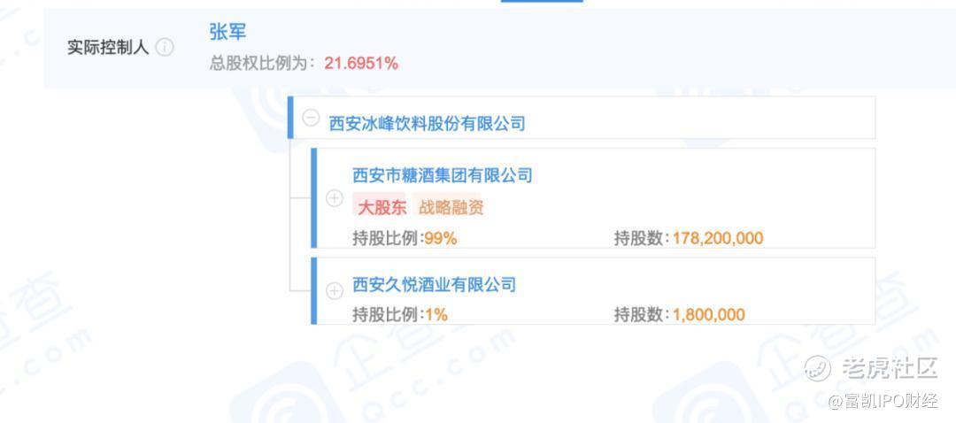 冰峰饮料招股书(申报稿)显示,目前西安市糖酒集团有限公司(以下简称“糖酒集团”)直接持有冰峰饮料99%的股权,为公司的控股股东;剩下1%的股份则由久悦酒业持有,而糖酒集团全资控股久悦酒业。其中2016年久悦酒业将冰峰饮料5%的股权转让给糖酒集团后退出,2019年又从糖酒集团处受让冰峰饮料1%股权。