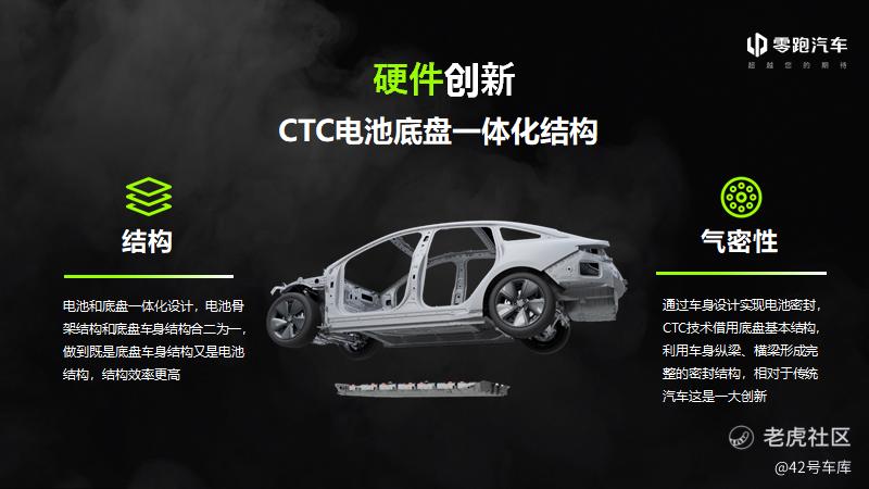 采用 CTC 结构的零跑的 C01 在官方发布会上表示,这一技术的应用让系统的零部件减少了 20%,结构件的成本下降了 15%,整车刚性提高了 25%,而搭载 CTC 电池包的零跑 C01 车身的扭转刚度达到了 33,897 N·m/deg。
