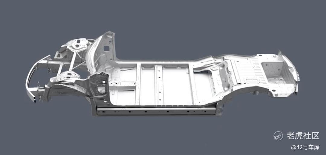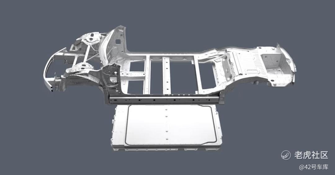 两种不同的结构在零件组成上的一个显著的变化,是电池上盖和车身地板从两个零件变为了一个零件。如下图所示,海豹的底盘在没装电池之前是「空」的,两者装配完成以后,电池上盖就成了车辆结构上的地板,车内 Z 向空间因此增加了 10 mm。