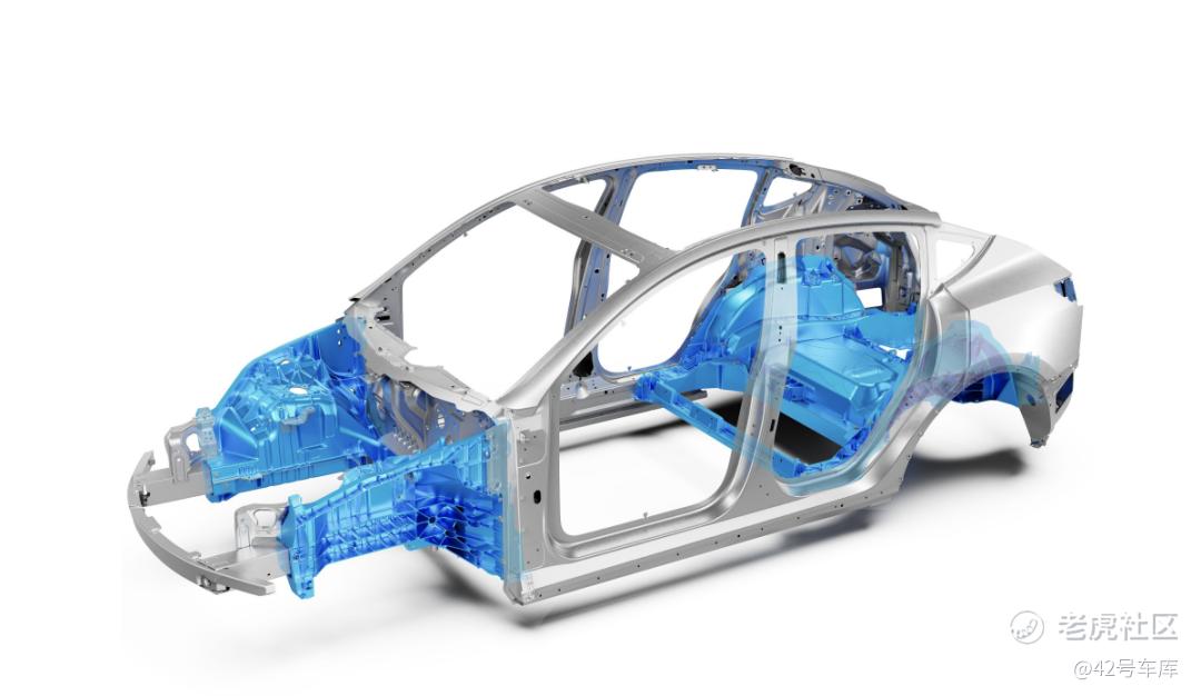 目前有应用类似电池结构的除了比亚迪海豹还有得州工厂生产的特斯拉 Model Y 和零跑 C01,思路上大同小异。特斯拉除去前后的一体式压铸车身底盘中间无横梁,电池包结构本身做了很强的横向力学强化,前排座椅支架也是直接放在电池包上。