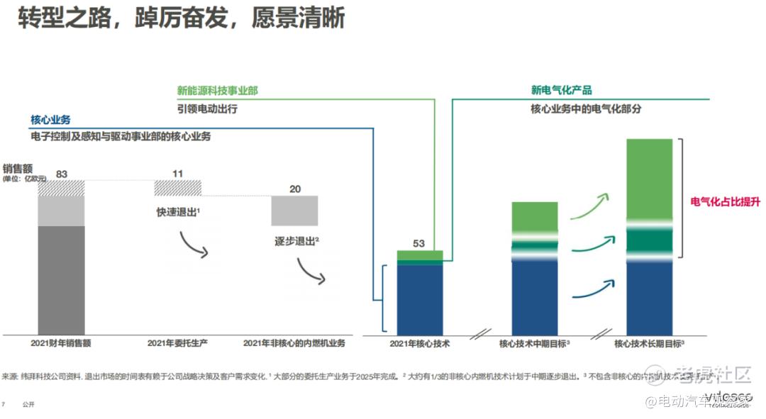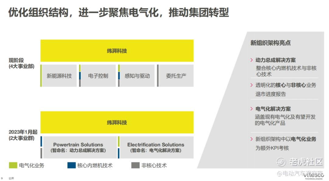 Powertrain Solutions主要整合核心内燃机技术和非核心技术,主要使命是创造价值;Electrification Solutions主要针对现有和有望开发的电气化产品,主要使命是推动增长。