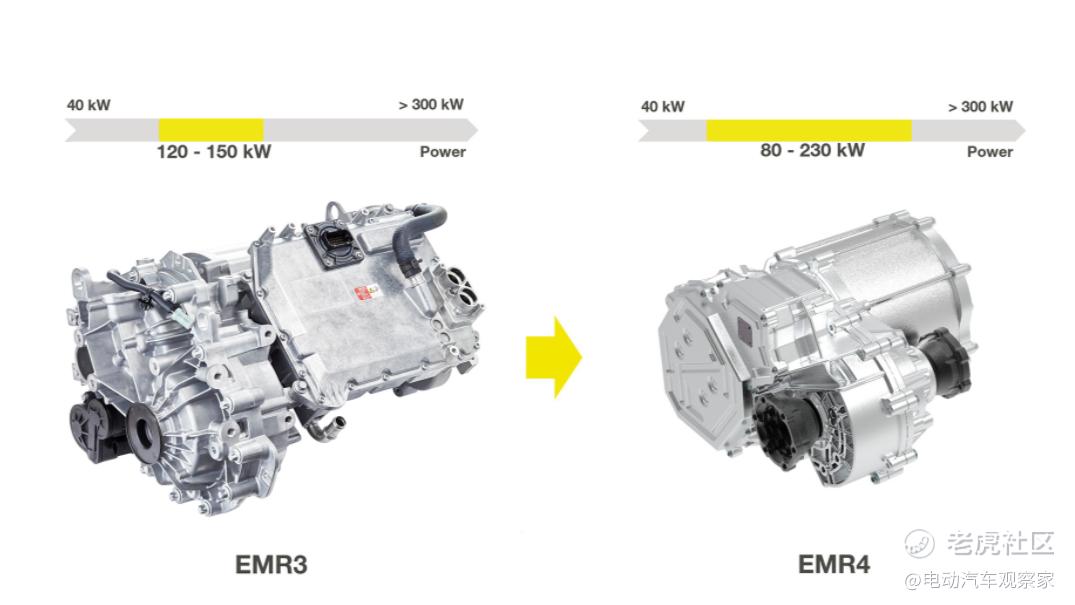 性能方面,通过模块化的设计,EMR4功率范围覆盖80千瓦至230千瓦。汽车制造商无需变更悬置位置或接口即可安装不同版本的驱动系统,从而使新平台为车辆提供不同功率等级。